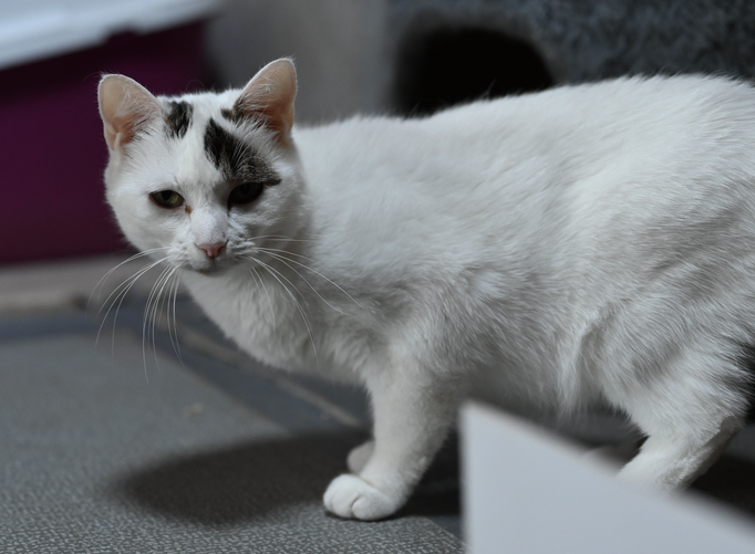 Seit dem Frühjahr 2024 lebt Miss Marple gemeinsam mit ihren beiden Brüdern bei uns. Sie ist eine zierliche Katzendame mit einem sanften Wesen, das sich nicht sofort zeigt. Ihre schüchterne Art macht sie zu einer stillen Beobachterin – stets wachsam, aber zurückhaltend.